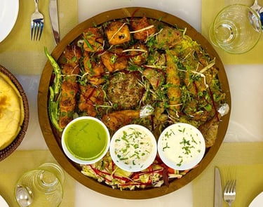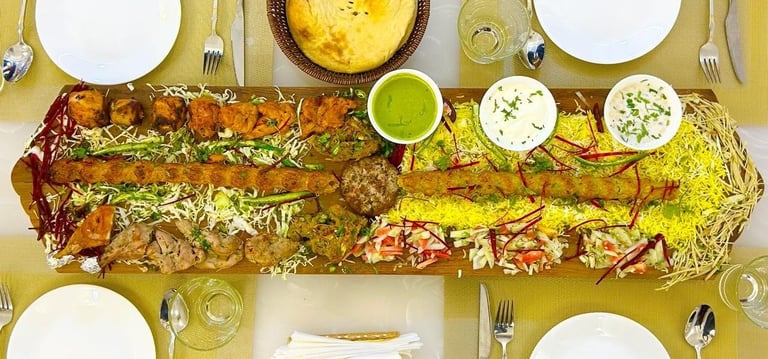 Juicy chicken marinated in yogurt and spices, char-grilled for a smoky flavor.Ghostana Special Kebab Platter