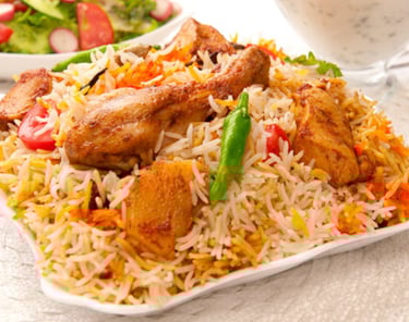 Whether enjoyed with raita or a side of tangy salad, chicken biryani is not just a meal, but a celebration of flavors. Its richness and fragrance make it a crowd-pleaser, and it's the perfect choice for any occasion, whether you're dining in or ordering for a group.