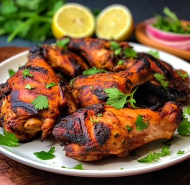 One of the most iconic dishes in Delhi, tandoori chicken is a celebration of smoky flavors and tender meat. The chicken is marinated in a yogurt-based mixture with a combination of spices like turmeric, garam masala, and red chili powder, giving it a vibrant color and a deep, smoky flavor. It's cooked in a tandoor (clay oven), which imparts a signature charred texture and an aroma that will make your mouth water.