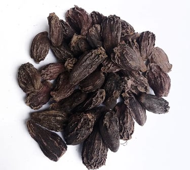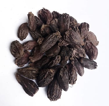 Unlike its smaller green counterpart, black cardamom (or badi elaichi) is larger, darker, and has a much smokier flavor. Native to the Himalayas, black cardamom is an essential spice in Indian kitchens, particularly in slow-cooked meat dishes. Its intense, earthy notes make it ideal for hearty preparations like mutton curry, chicken tikka, and nihari.