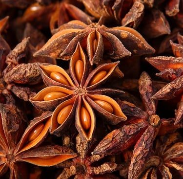 Star anise, with its star-shaped appearance, is a spice that has traveled across centuries from Southeast Asia to become a staple in Indian cuisine. With its warm, licorice-like taste, star anise has carved a niche for itself in the world of cooking, particularly in meat dishes. It is used extensively in garam masala blends and finds its way into slow-cooked delicacies such as mutton biryani and nihari.